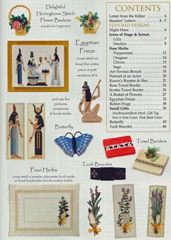 This issue features full colour photographs, instructions, charts and requirements with a step-by-step guide to square stitch. The threads used are given as an option of DMC or Anchor. If choosing the bead option, the beads listed are Miyuki Delica Cylinder Beads size 11/0 - beads are available on this website.