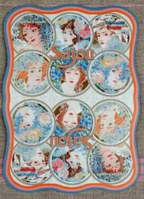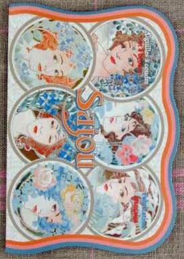 The cover represents six women's in an Art Nouveau style (19th century). The interior is a floral print in blue and pink tones.