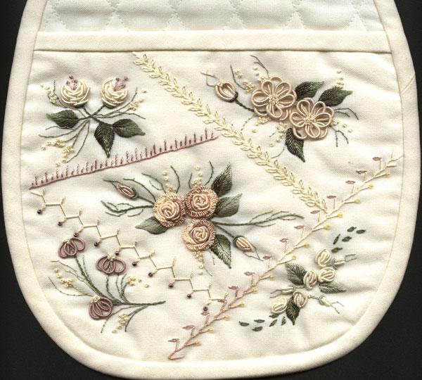 34cm x 34cm/13.4" x 13.4" x 3 piecesStitches used - Alternating satin stitch, bullion knot, cast-on stitch, lazy daisy, pistil, french knots, cretan stitch with beads, feather stitch with lazy daisy & beads, long and short blanket stitch